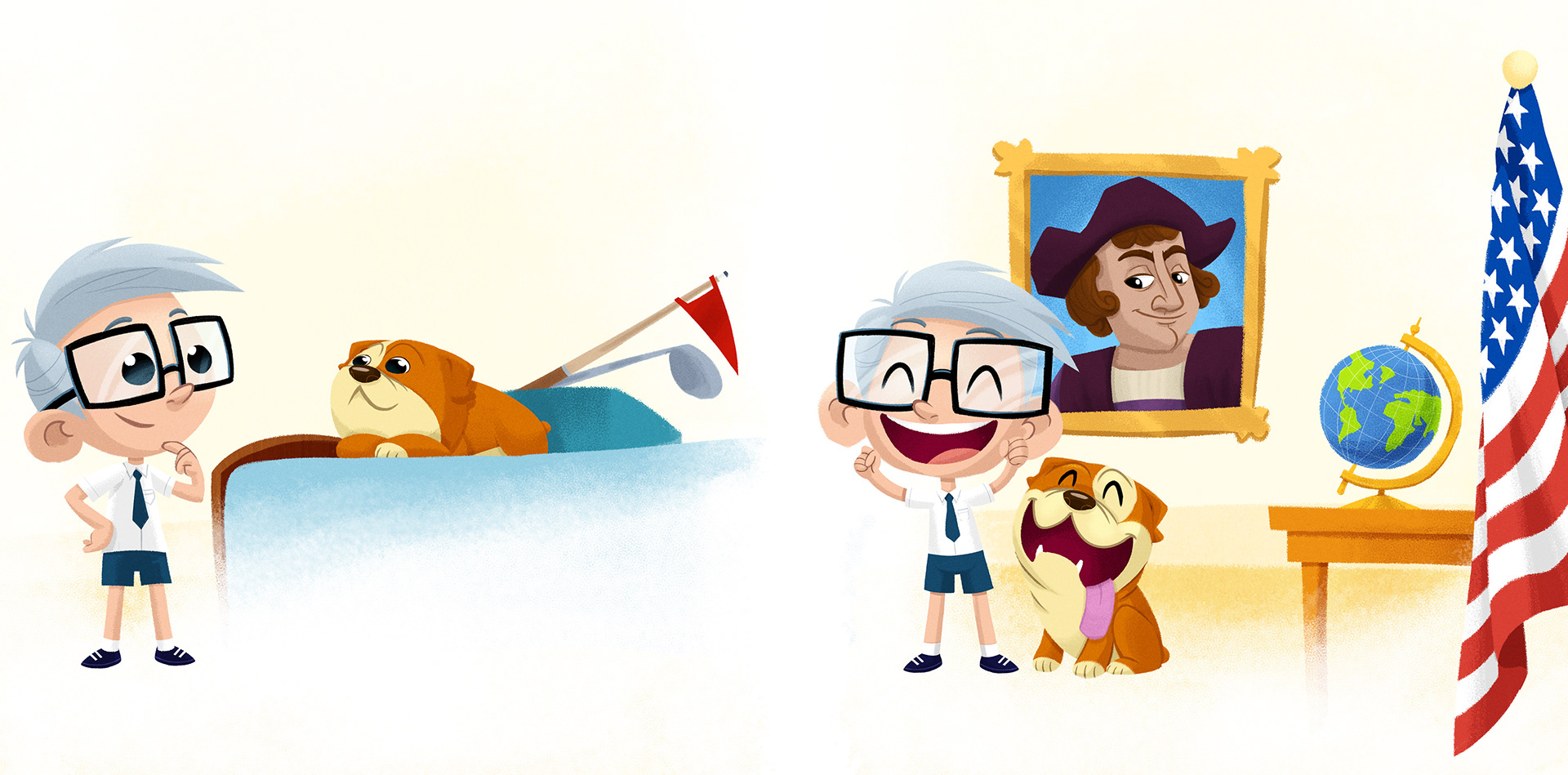 I created the original concept for PragerU’s hit kids’ series Ott’s Tales, developing both the character designs and the core story: a young Dennis Prager and his puppy Otto traveling through time to learn about history and American principles. I wrote and illustrated the first two books in the series, which became the foundation for the YouTube show as well as the ongoing children’s book line.